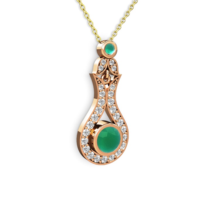 Kök zümrüt ve beyaz zirkon 925 ayar rose altın kaplama gümüş kolye (40 cm altın rolo zincir)