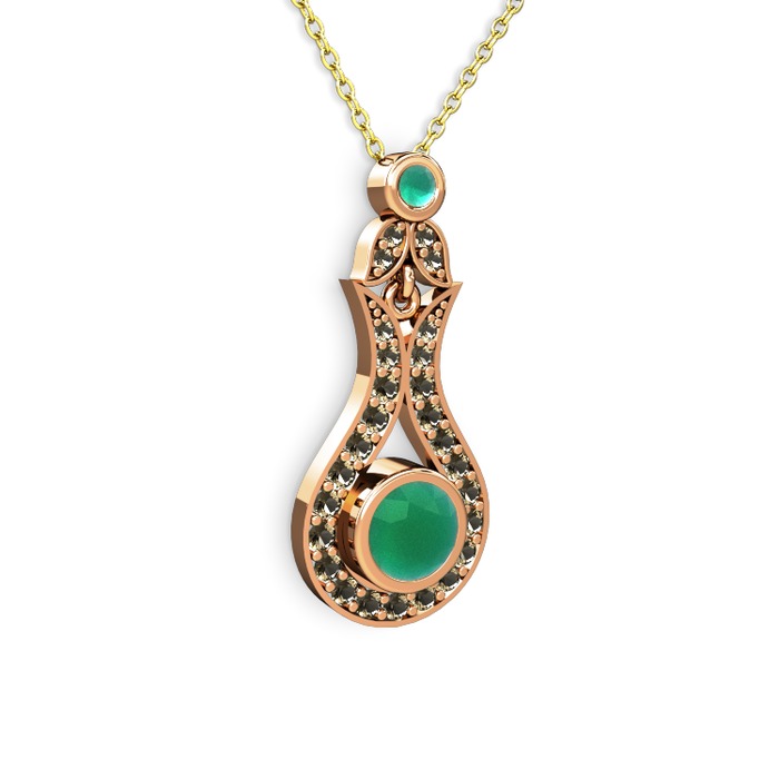 Kök zümrüt ve dumanlı kuvars 18 ayar rose altın kolye (40 cm altın rolo zincir)