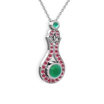 Kök zümrüt ve kök yakut 18 ayar beyaz altın kolye (40 cm beyaz altın rolo zincir)