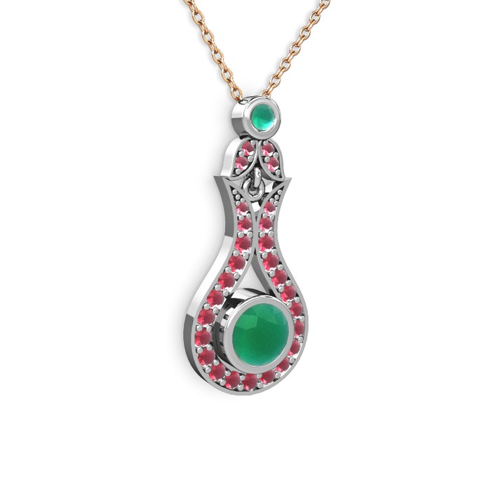 Kök zümrüt ve kök yakut 925 ayar gümüş kolye (40 cm rose altın rolo zincir)
