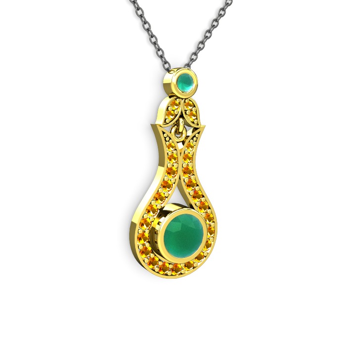 Kök zümrüt ve sitrin 8 ayar altın kolye (40 cm gümüş rolo zincir)