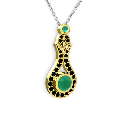 Kök zümrüt ve siyah zirkon 14 ayar altın kolye (40 cm gümüş rolo zincir)