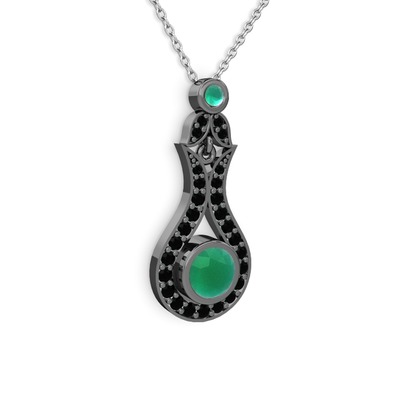 Kök zümrüt ve siyah zirkon 925 ayar siyah rodyum kaplama gümüş kolye (40 cm beyaz altın rolo zincir)