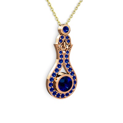 Lab safir 8 ayar rose altın kolye (40 cm altın rolo zincir)