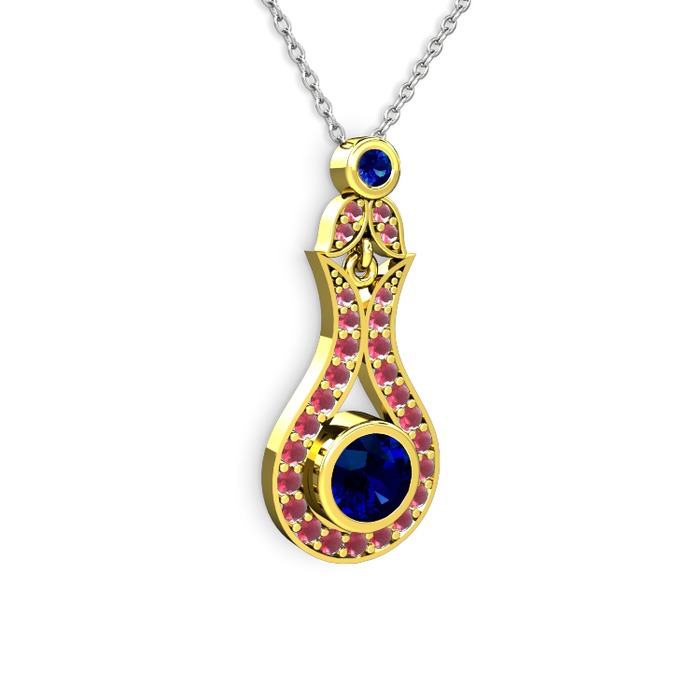 Lab safir ve kök yakut 8 ayar altın kolye (40 cm beyaz altın rolo zincir)