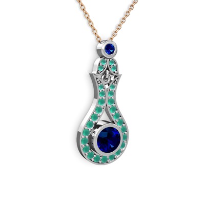 Lab safir ve kök zümrüt 14 ayar beyaz altın kolye (40 cm rose altın rolo zincir)