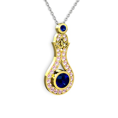 Lab safir ve pembe kuvars 925 ayar altın kaplama gümüş kolye (40 cm beyaz altın rolo zincir)