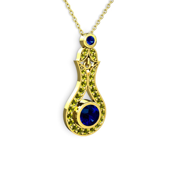 Lab safir ve peridot 18 ayar altın kolye (40 cm altın rolo zincir)