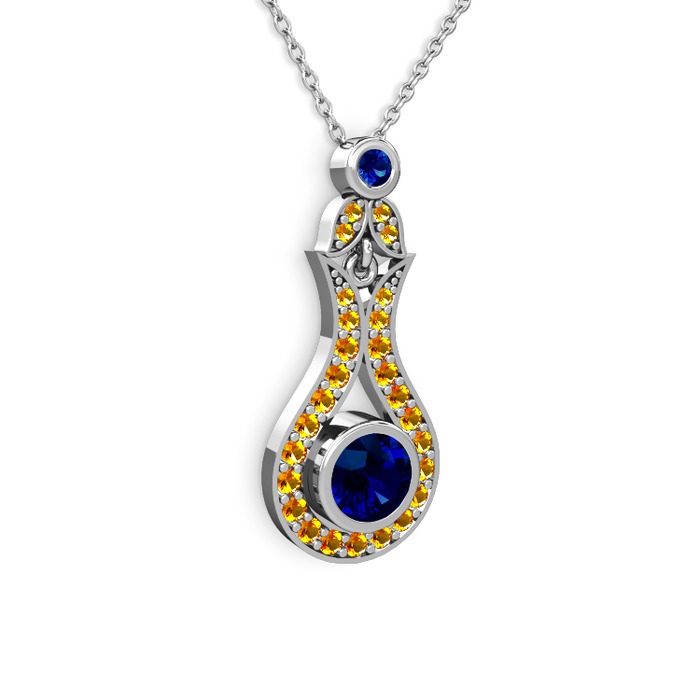 Lab safir ve sitrin 925 ayar gümüş kolye (40 cm beyaz altın rolo zincir)