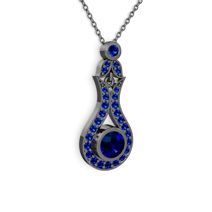 Lab safir 925 ayar siyah rodyum kaplama gümüş kolye (40 cm gümüş rolo zincir)