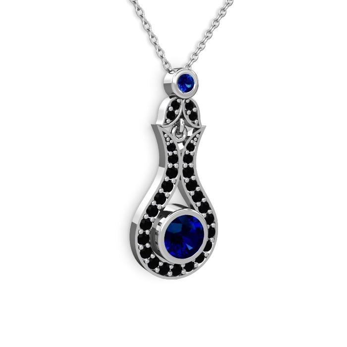 Lab safir ve siyah zirkon 8 ayar beyaz altın kolye (40 cm beyaz altın rolo zincir)