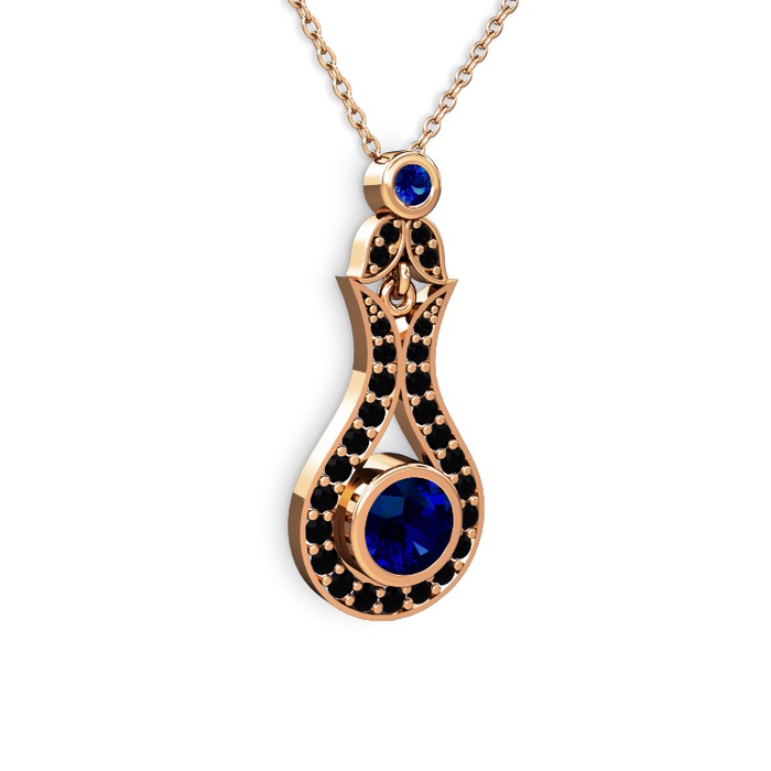 Lab safir ve siyah zirkon 925 ayar rose altın kaplama gümüş kolye (40 cm rose altın rolo zincir)