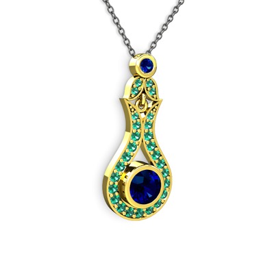 Lab safir ve yeşil kuvars 925 ayar altın kaplama gümüş kolye (40 cm gümüş rolo zincir)