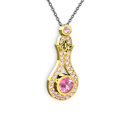 Pembe kuvars 14 ayar altın kolye (40 cm gümüş rolo zincir)
