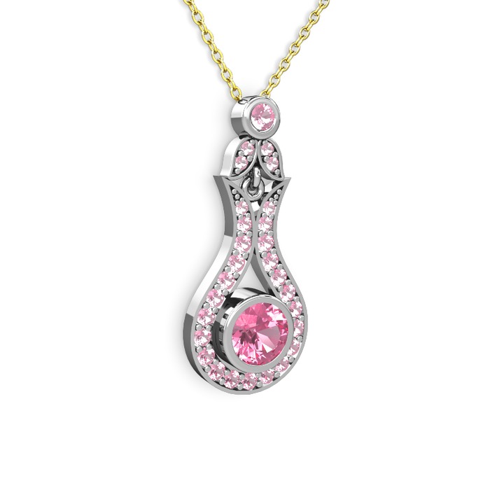 Pembe kuvars 18 ayar beyaz altın kolye (40 cm altın rolo zincir)