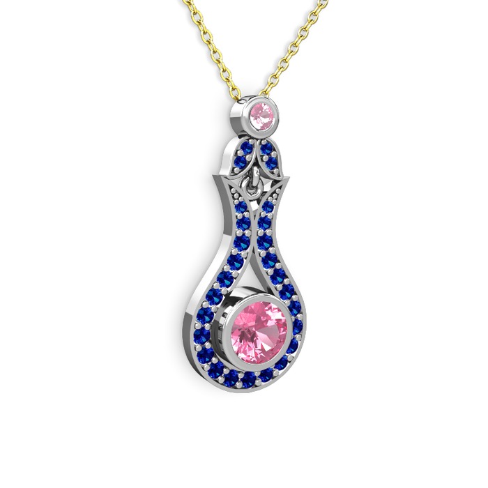 Pembe kuvars ve lab safir 8 ayar beyaz altın kolye (40 cm altın rolo zincir)