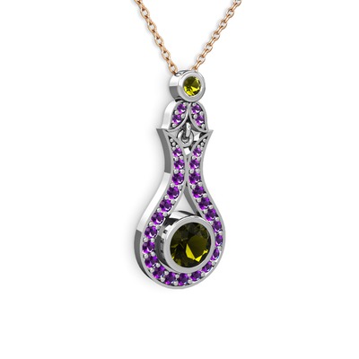 Peridot ve ametist 18 ayar beyaz altın kolye (40 cm rose altın rolo zincir)