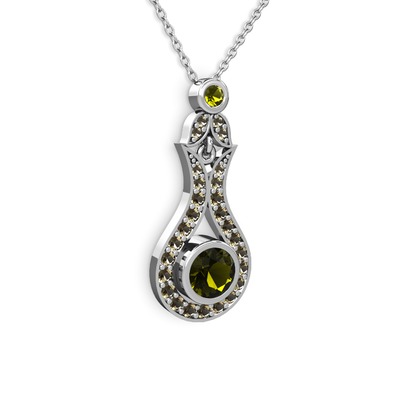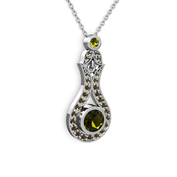 Peridot ve dumanlı kuvars 18 ayar beyaz altın kolye (40 cm beyaz altın rolo zincir)