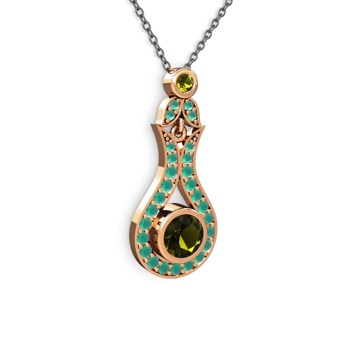 Peridot ve kök zümrüt 925 ayar rose altın kaplama gümüş kolye (40 cm gümüş rolo zincir)
