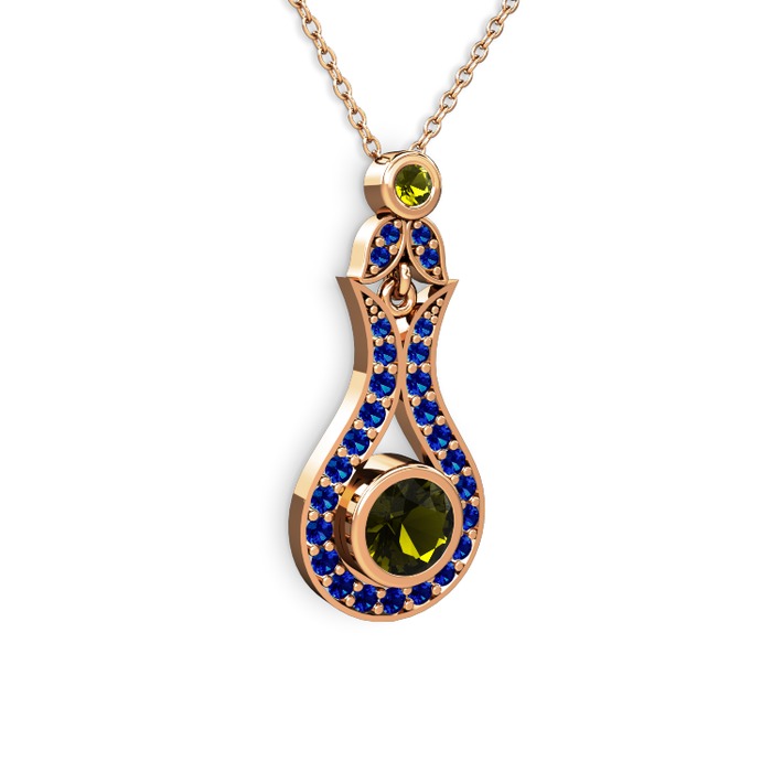 Peridot ve lab safir 18 ayar rose altın kolye (40 cm rose altın rolo zincir)