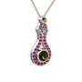Peridot ve rodolit garnet 18 ayar beyaz altın kolye (40 cm rose altın rolo zincir)