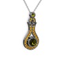 Peridot ve sitrin 925 ayar siyah rodyum kaplama gümüş kolye (40 cm gümüş rolo zincir)