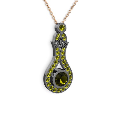 Peridot 925 ayar siyah rodyum kaplama gümüş kolye (40 cm rose altın rolo zincir)