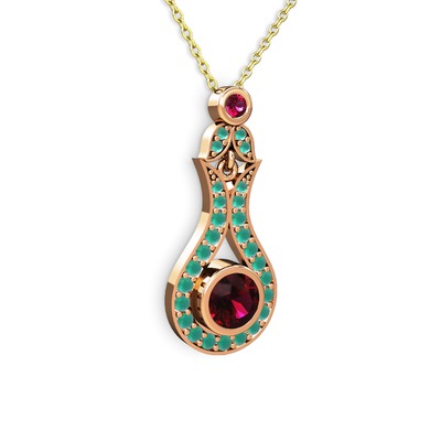 Rodolit garnet ve kök zümrüt 925 ayar rose altın kaplama gümüş kolye (40 cm altın rolo zincir)