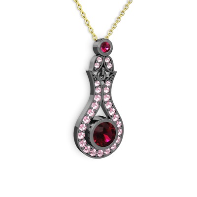Rodolit garnet ve pembe kuvars 925 ayar siyah rodyum kaplama gümüş kolye (40 cm altın rolo zincir)