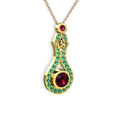Rodolit garnet ve yeşil kuvars 18 ayar altın kolye (40 cm rose altın rolo zincir)