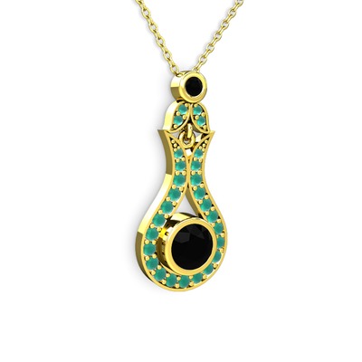 Siyah zirkon ve kök zümrüt 14 ayar altın kolye (40 cm altın rolo zincir)