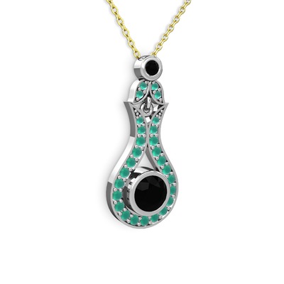 Siyah zirkon ve kök zümrüt 18 ayar beyaz altın kolye (40 cm altın rolo zincir)