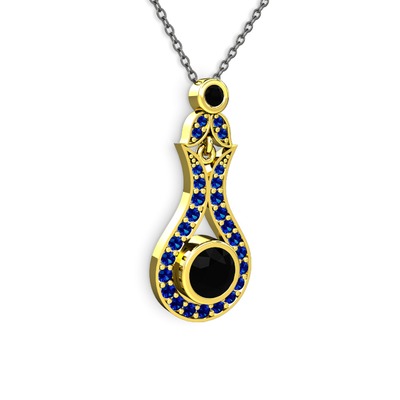 Siyah zirkon ve lab safir 8 ayar altın kolye (40 cm gümüş rolo zincir)