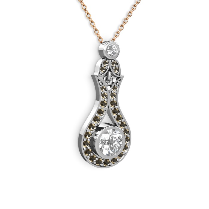 Swarovski ve dumanlı kuvars 925 ayar gümüş kolye (40 cm rose altın rolo zincir)