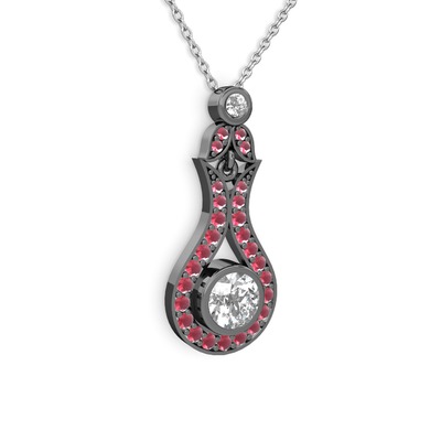 Swarovski ve kök yakut 925 ayar siyah rodyum kaplama gümüş kolye (40 cm beyaz altın rolo zincir)