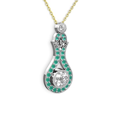 Swarovski ve kök zümrüt 18 ayar beyaz altın kolye (40 cm altın rolo zincir)