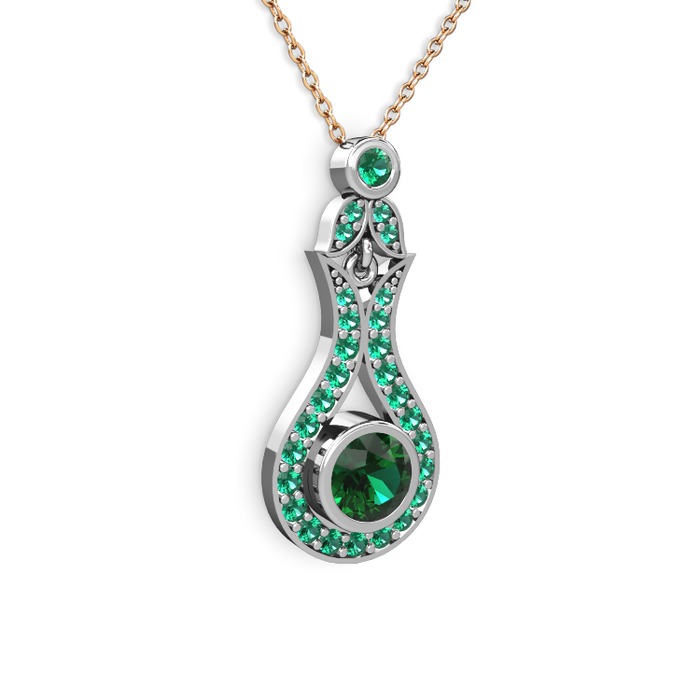 Yeşil kuvars 8 ayar beyaz altın kolye (40 cm rose altın rolo zincir)