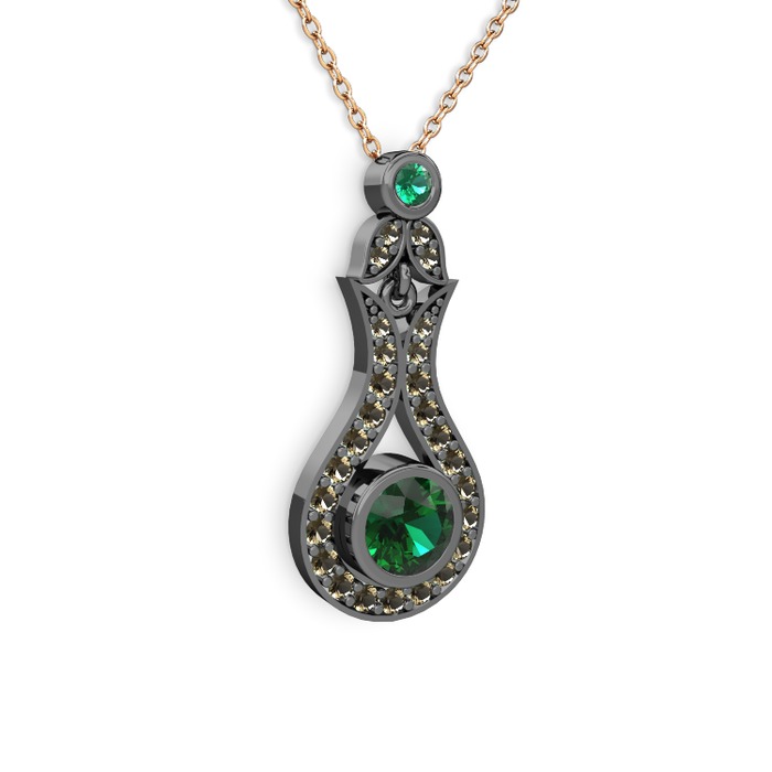 Yeşil kuvars ve dumanlı kuvars 925 ayar siyah rodyum kaplama gümüş kolye (40 cm rose altın rolo zincir)