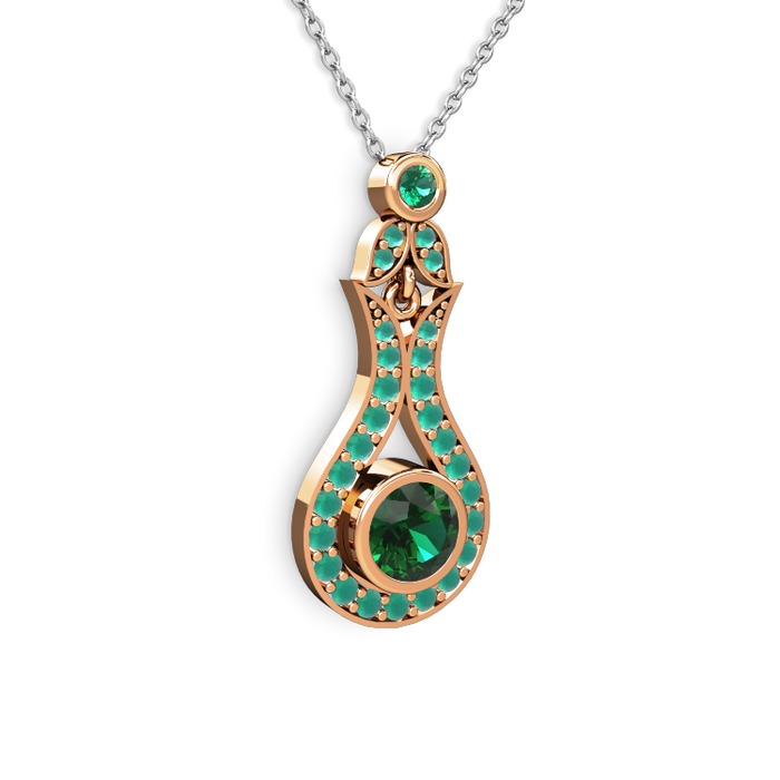 Yeşil kuvars ve kök zümrüt 14 ayar rose altın kolye (40 cm beyaz altın rolo zincir)