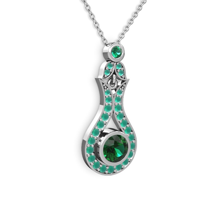 Yeşil kuvars ve kök zümrüt 925 ayar gümüş kolye (40 cm beyaz altın rolo zincir)