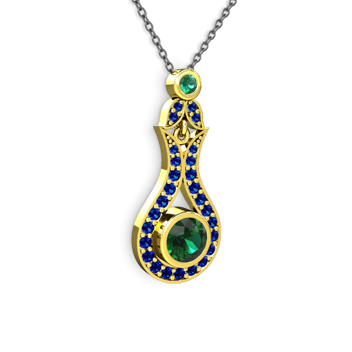 Yeşil kuvars ve lab safir 14 ayar altın kolye (40 cm gümüş rolo zincir)