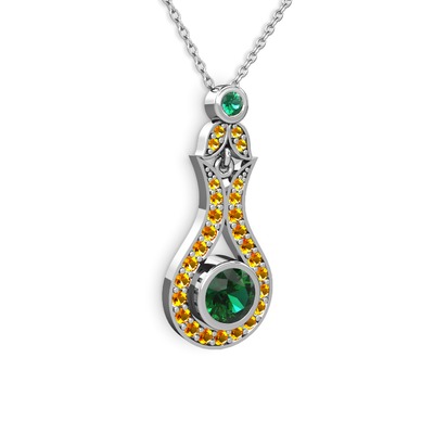 Yeşil kuvars ve sitrin 18 ayar beyaz altın kolye (40 cm beyaz altın rolo zincir)