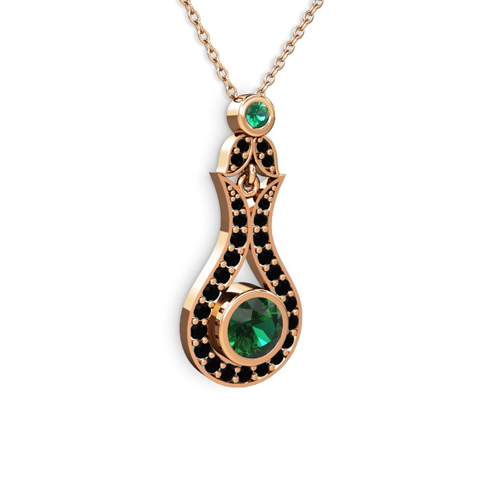 Yeşil kuvars ve siyah zirkon 18 ayar rose altın kolye (40 cm rose altın rolo zincir)