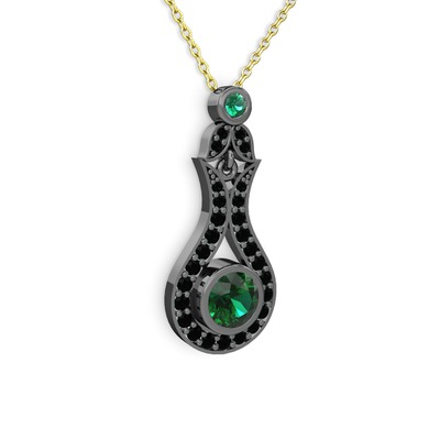 Yeşil kuvars ve siyah zirkon 925 ayar siyah rodyum kaplama gümüş kolye (40 cm altın rolo zincir)