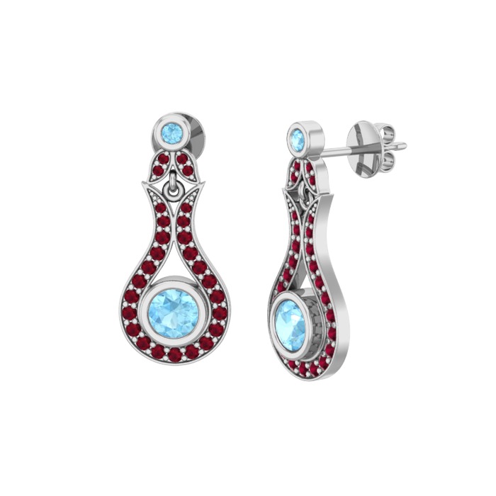 Akuamarin ve kök yakut 18 ayar beyaz altın küpe