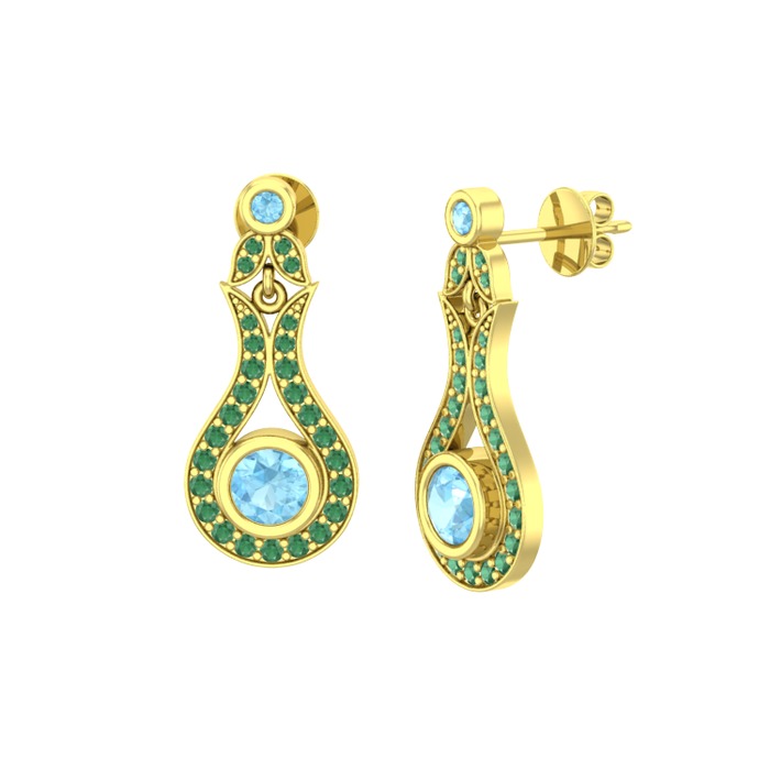 Akuamarin ve kök zümrüt 14 ayar altın küpe