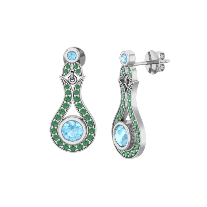 Akuamarin ve kök zümrüt 18 ayar beyaz altın küpe