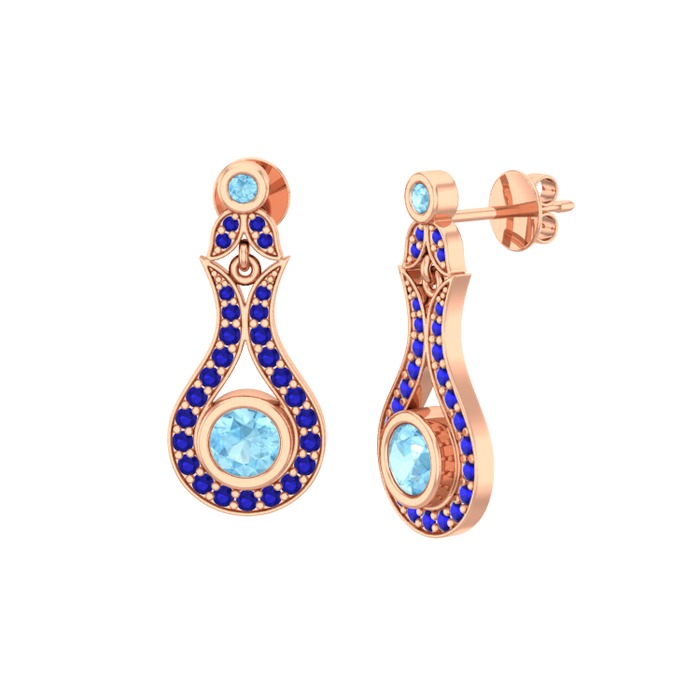 Akuamarin ve lab safir 14 ayar rose altın küpe