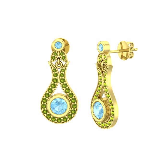 Akuamarin ve peridot 14 ayar altın küpe