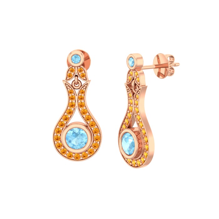 Akuamarin ve sitrin 8 ayar rose altın küpe